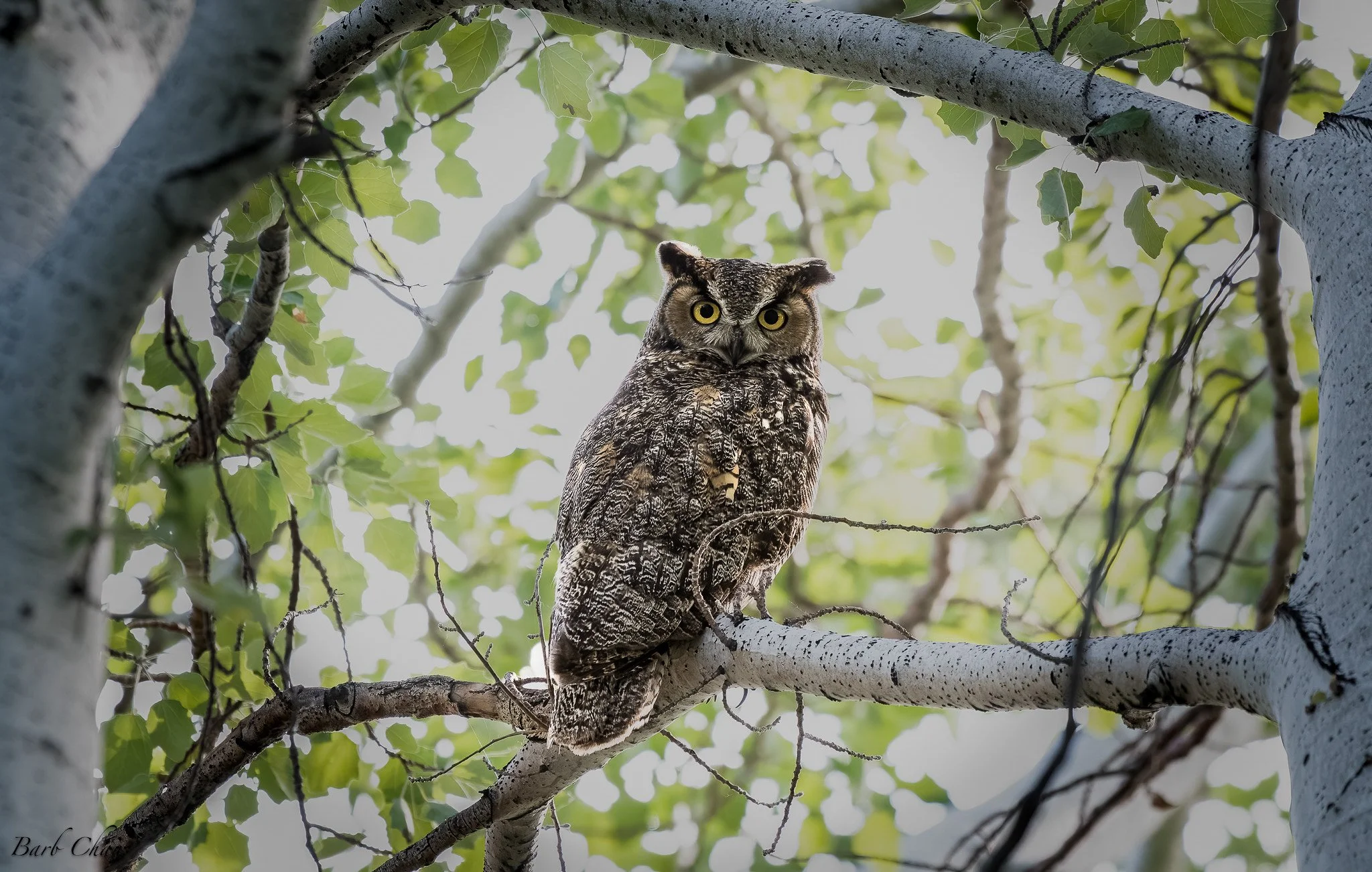 Are the resident Great horned owls vocalizing in the Douglas fir?