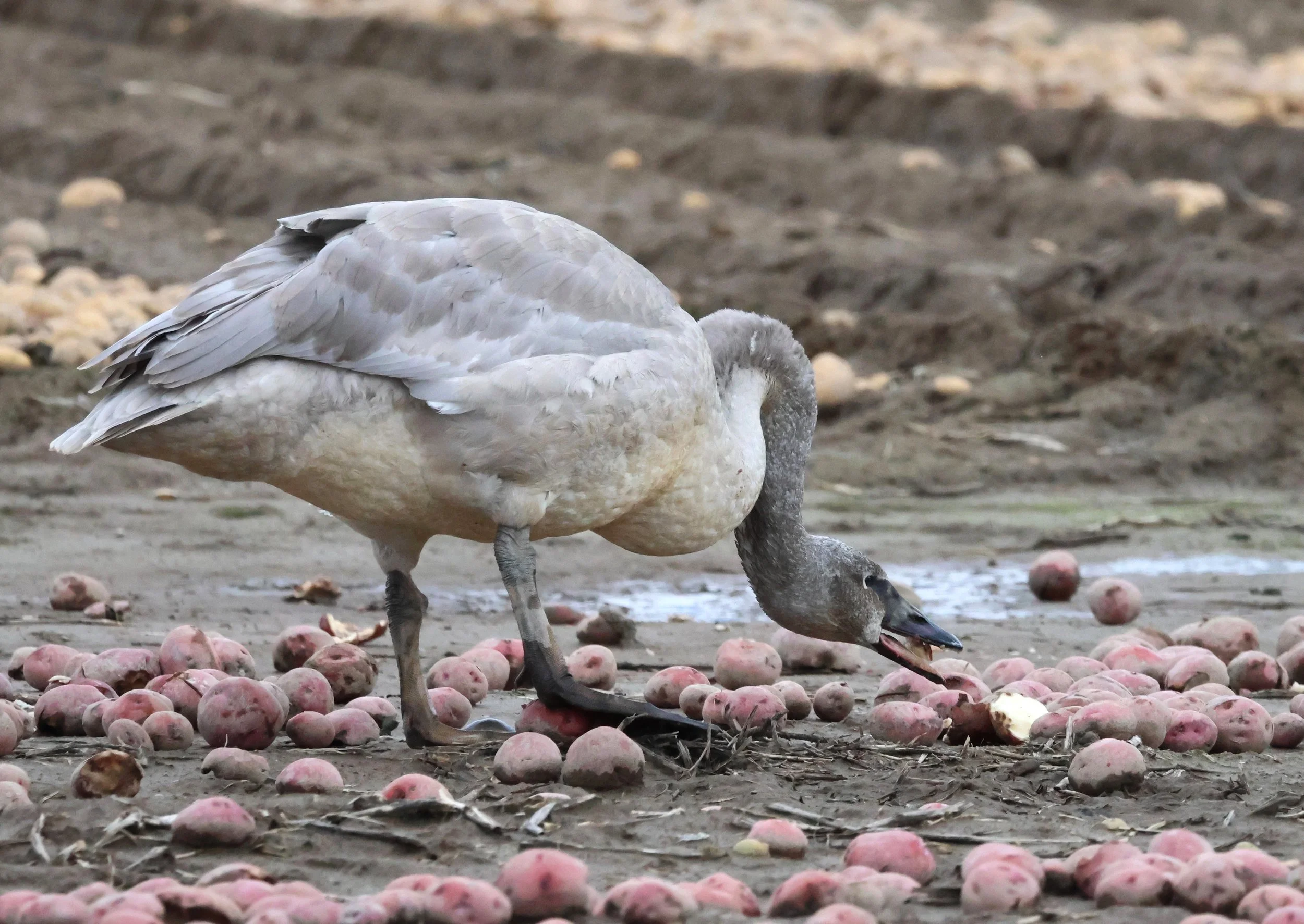 Trumpeter swan eating potatoes (Photo: Kim Cashon-Smith)
